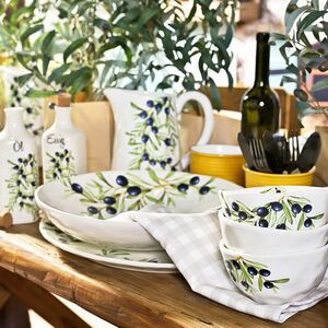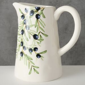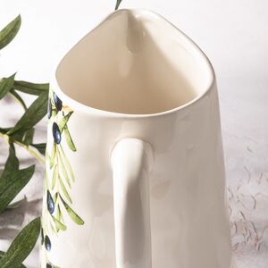 Кувшин Armando Olivia - изящный сосуд, дополненный рисунком в виде свисающей лозы оливкового дерева. Вытянутый носик для переливания жидкости и ручка делают его удобной посудой для подачи напитков на стол. Помимо этого керамический красавец может легко стать и вазой для цветов, и самостоятельным элементом декора в комнате за счет элегантной формы и прекрасного художественного оформления.