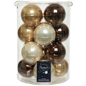 Когда-то шоколад считали лакомством с пряным привкусом роскоши, соблазна и изысканных удовольствий. Этот чарующий шарм тонко передан в наборе новогодних шаров. Вглядитесь в глубокий цвет какао, солнечное сияние карамели, мягкие переливы жемчужного оттенка - "сладкая" палитра пленяет и завораживает. Стоит повесить эти стеклянные шары на елку, и ваш праздничный интерьер обретет подлинную элегантность и аристократичность.
