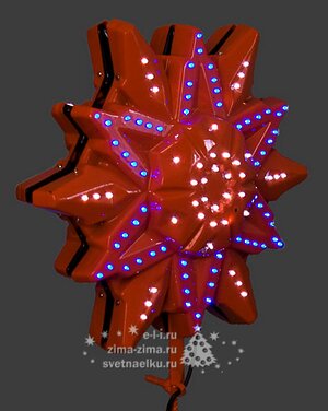 Световая верхушка для елки - представляет собой светящуюся верхушку для новогодних елок. Выполнена в виде снежинки. Подключается к контроллеру. Цвет на выбор. Имеет очень яркий свет в темное время суток. Диаметр 45 см. Напряжение 24V.