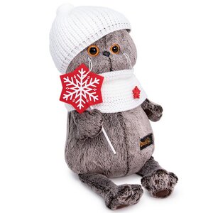 Зима Кота Басика не пугает! Напротив, он готов часами гулять по улицам, разглядывая яркие витрины, играть в снежки и кататься на коньках. Для зимнего променада у него даже подготовлен специальный вязаный комплект, состоящий из шапочки и шарфика. В таком образе игрушка Кот Басик часто ловит на себе восхищенные взгляды прохожих. А кто-то умудряется еще и угостить серенького красавчика леденцом! Ох уж этот стиляга от Буди Баса - знает же, что перед его умилительными глазками, мягкой шерсткой и модным образом никому не устоять, и бессовестно этим пользуется!