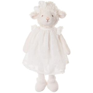 Овечка Молли решила заранее подготовиться к лету и сшить для себя новое симпатичное платьице. Мама и бабушка нашей крохи, посовещавшись, достали из сундука роскошную белую ткань. Молли приложила ее к себе - и восхитилась, а еще, конечно, сразу же представила себе новое чудесное платье. Наряд и в самом деле получился обворожительным - он очень идет плюшевой игрушке овечке, а бантик, приколотый к ее головке, стал отличным дополнением нежного образа.
