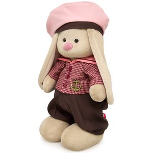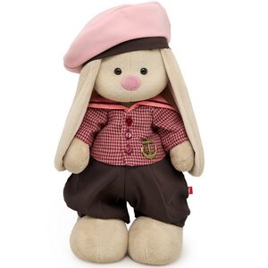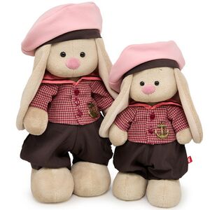 Дома у Зайки Ми есть целая гардеробная, в которой хранятся самые изысканные и роскошные наряды! Особое место в ней занимает фантастический матросский костюмчик, состоящий из комфортных штанишек цвета молочного шоколада и плотной клетчатой рубашки с большим воротником "гюйс" и бронзовым якорем, который сразу же бросается в глаза. Дополняет образ элегантный головой убор - зефирно-розовая бескозырка с коричневым ободком, которая отлично сочетается со всеми элементами комплекта. Согласитесь, что у Зайки Ми от Budibasa отличный вкус - такой наряд идеально подойдет как для неспешных прогулок по набережной, так и для морского круиза.