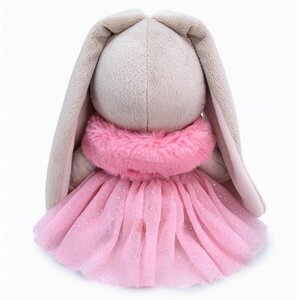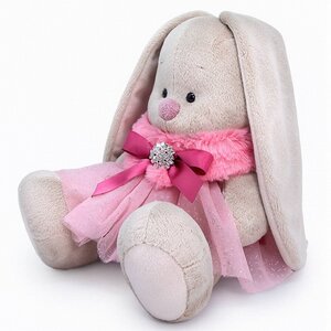 Сегодня Зайка Ми собиралась сходить на балет, но после полудня на улице стало весьма прохладно и ей пришлось искать стильный, теплый и подходящий под образ аксессуар. Ее основной наряд был из воздушного платья цвета розового зефира с пышной юбкой, на которой завораживающе сверкают серебряные блестки. Ми долгое время перебирала различные шарфики в своем гардеробе и вдруг наткнулась на невероятно мягкую, теплую горжетку, идеально сочетающуюся с ее платьицем. Она завязывалась спереди изящным атласным бантиком, в середине которого сияла серебряная брошь с множеством кристаллов. Горжетка отлично подошла под цвет платья, а серебряные блестки на юбке изумительно смотрелись в сочетании с брошкой. Теперь Зайка точно не замерзнет по пути в театр и будет выглядеть просто сногсшибательно!