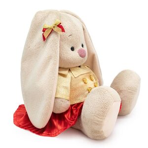 Очаровательная Зайка Ми уверена: на празднике нужно красоваться в своем самом лучшем и шикарном наряде! Специально для предстоящих зимних торжеств эта героиня бренда Буди Баса подготовила роскошный комплект, состоящий из стильного золотистого жакета и красного сарафанчика. На ушке у мягкой игрушки Зайки Ми можно увидеть традиционный бантик, сочетающий в себе алый и золотой оттенки. Не сомневаемся, что все друзья этой крошки будут восхищены ее безупречным вкусом, чувством стиля и продуманным образом.