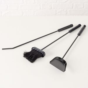 В набор для камина входят совок для уборки золы, кочерга для распределения дров и щетка для чистки стенок от копоти и сажи. Стандартный комплект, с которым вы сможете поддерживать чистоту камина.