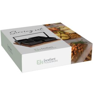 Дизайнеры бренда Koopman уверены, что красивая посуда для подачи лакомств на столе создает настроение и делает даже простую трапезу особенной! Яркий тому пример - посуда для закусок Ermston. Черные квадратные чаши из керамики в сочетании с древесным подносом задают стиль и придают аппетитный вид даже самым незамысловатым лакомствам. О практичности дизайнеры тоже не забыли: набор для закусок отличается оптимальной для небольшой компании емкостью чаш и удобной ручкой на подносе для переноски.