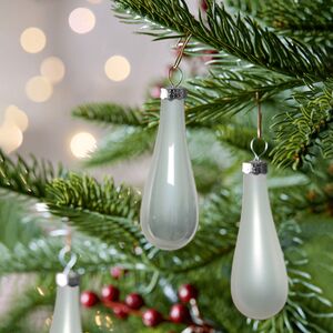 Стеклянные украшения всегда смотрятся благородно и изысканно, они делают образ лесной красавицы нарядным и выразительным. Елочные игрушки капли выполнены в двух вариациях - с матовой и глянцевой поверхностью. Глядя на них, создаётся впечатление, будто сама Снежная Королева заморозила капельки волшебного нектара, чтобы сохранить его красоту. Повесьте украшения на хвойные веточки, и пусть пространство наполнится атмосферой зимней сказки!