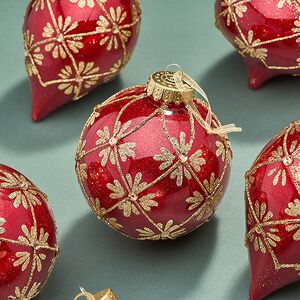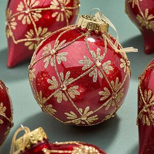 Согрейте свой дом теплом зимнего праздника! Набор ёлочных шаров Heart of Nivalis диаметром 10 см в насыщенном красном цвете с изящными золотыми цветочными узорами создаст в вашем доме атмосферу уютного и роскошного торжества. Эти великолепные украшения увеличенного размера сочетают в себе традиционную праздничную эстетику и современные технологии, создавая неповторимый образ вашей новогодней ёлки.