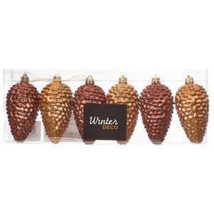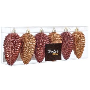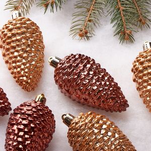Хвойное деревце просто невозможно представить без шишек! И если вдруг ваша пушистая лесная гостья - искусственная и настоящих шишек на ней нет, на помощь непременно придут тематические новогодние игрушки! Российский бренд Winter Deco представил симпатичный набор, состоящий из шести елочных украшений. Часть шишек имеет красивый золотой оттенок, а другая - медный, при этом они выполнены настолько филигранно, что можно легко разглядеть каждую деталь игрушек.