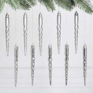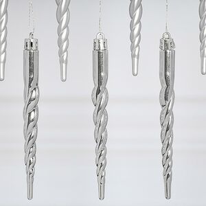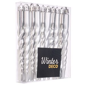 Пластиковые елочные игрушки от бренда Winter Deco так похожи на настоящие сосульки! Кажется, что над их созданием потрудились не талантливые дизайнеры, а сама матушка-природа. Так и хочется прикоснуться к таким новогодним украшениям на елку, чтобы почувствовать, как метко холод обожжет подушечки пальцев. Но на самом деле перед нами, конечно же, симпатичные пластиковые игрушки, выполненные в серебряном оттенке, которые помогут сделать праздничный облик красавицы-елочки еще более эффектным и нарядным.
