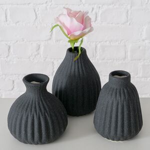 Черные, с рифлеными стенками, стильные и современные, фарфоровые вазы Leeds создадут яркий акцент в интерьере даже без цветов! Если вы хотите добавить в обстановку лаконичных красок и позитива, то этот набор декоративных ваз станет идеальным решением!