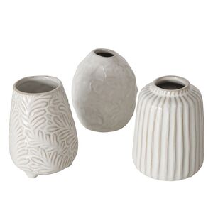 Маленькие вазочки Minas de Riotinto - находка для ценителей лаконичных уютных вещиц для дома! Каждый сосуд индивидуален: создатели этой коллекции явно не скупились на креативные решения. Однако разница в фактурах и формах не лишает цветочные вазы стилистического единства: в соседстве друг с другом белые сосуды из керамики способны создать красивый акцент в интерьере и стать дополнением для небольших цветочных композиций.