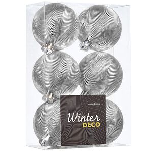 Новогодние игрушки на елку от бренда Winter Deco - это качество, проверенное временем. Если вы находитесь в поиске пластиковых украшений, которые долгие годы будут служить вам верой и правдой - обратите внимание на набор, состоящий из шести серебристых шаров. Ими можно украсить новогоднее деревце в доме или офисе. Елочные игрушки станут отличной базой, которую вы сможете дополнять при помощи ярких акцентов - более крупных шаров или впечатляющих подвесок.