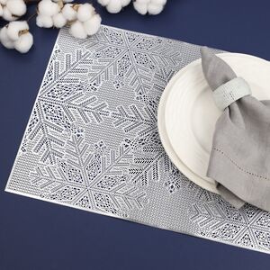 Сервировочные салфетки Бонифас - и украшение стола, и практичное решение, защищающее столешницу от царапин и прочих внешних воздействий. Рисунок в виде снежинок, приятный серебряный оттенок и лаконичная прямоугольная форма делают этот набор плейсматов универсальным помощником в сервировке будничных завтраков, обедов и ужинов, а также в организации праздничного застолья.