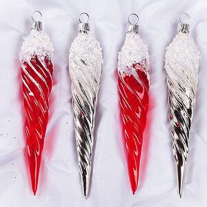 Набор стеклянных сосулек "Рифленый", (С560-сер-кр) ТМ "Елочка. Клинская игрушка".