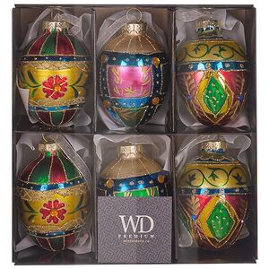 Словно ярмарочные скоморохи в лоскутных рубахах, новогодние игрушки Яйца - Loreto Aprutino так и брызжут озорством и безбашенным весельем. С монохромными колючими гордячками их знакомить не стоит, но повесьте игрушки на елку в традиционном цветастом уборе, и эти колоритные ребята отлично впишутся в его праздничный стиль, засияв на все лады. Да им впору давать елочным игрушкам мастер-классы "Как затмить фейерверк "!