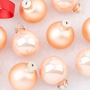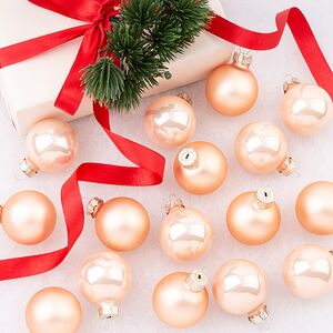 Маленькие новогодние шары - отличное решение для миниатюрных елок, декорирования комнаты и создания зимних композиций. Глянцевые украшения добавят в оформление винтажного шика, а матовые придадут убранству елки волшебного очарования. Нежный персиковый цвет и классический стиль позволяют удачно сочетать эти маленькие новогодние шарики с другим елочным декором.
