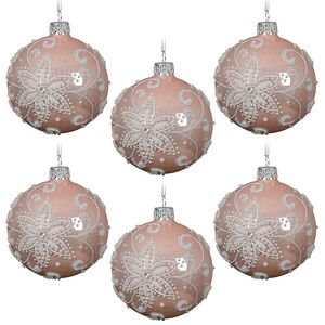 Новогодние шары от голландского бренда Kaemingk - воплощение нежности и элегантности! На светло-розовом фоне расцветают великолепные цветы, словно созданные невероятными морозными узорами. Дополненные сверкающими блестками, они будут поистине волшебно переливаться при свете рождественских огоньков. Серебристая фурнитура и лента в тон удачно дополняют новогодние шары - вам останется только украсить ими пушистые веточки хвои.