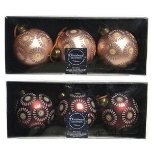 Набор новогодних шаров Maurizio Clomodo на лентах из органзы - прекрасный выбор для того, чтобы привнести в убранство елки еще больше разнообразия и необычных оттенков! Классические матовые шары из стекла, окрашенные в величественный цвет бургунди и дополненные цветочной росписью, гармонично вольются в любое оформительское решение.