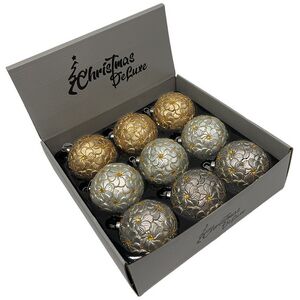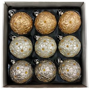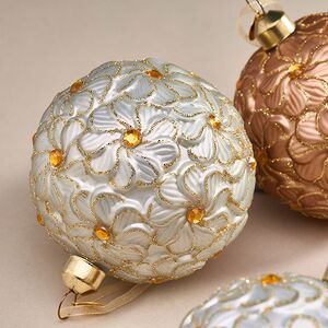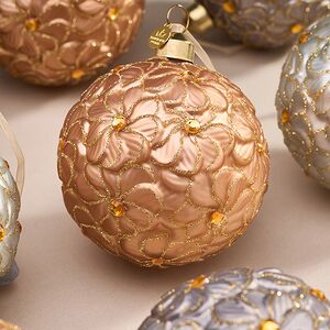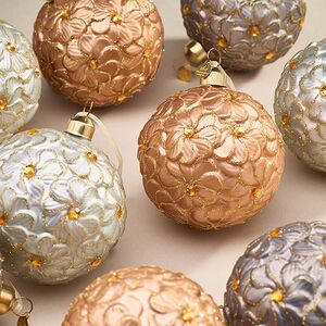Набор елочных шаров Rosolina - Flower Fantasy расцветет на деревце фактурными цветами, разольется серебром, медью и позолоченной платиновой нежностью тонированных поверхностей! Развесьте украшения по веткам ели - мягкость оттенков, искусные флористические узоры и мелодичный звон стекла внесут в симфонию праздника тонкие нотки цветочного вдохновения!