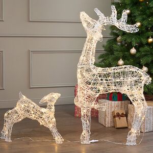 Семейство оленей вдохнет дух Нового года в любую праздничную локацию, будь это сад на улице, праздничный зал или уютная комната в доме. Будто сплетенные из снежной пряжи, фигуры светящихся оленей выглядят воздушно и легко! Лампочки, освещающие каждый сантиметр их каркасов, сказочно мерцают, превращая фигуры в живых персонажей зимней сказки.