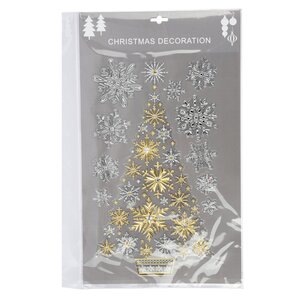Даже самые примитивные новогодние наклейки обладают чудесным свойством наполнять повседневный интерьер волшебством, а изящные снежинки с узорчатыми лучиками, рисующие на стекле силуэт роскошной ели, и вовсе превратят комнату в Зимний дворец. Очаровательные новогодние стикеры, посверкивающие золотом и серебром, заставят заискриться предвкушением праздника даже сухую офисную обстановку!