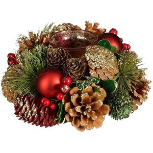 Подсвечник с шишками от голландского бренда Edelman поможет создать особенную, праздничную атмосферу и украсить в дом в преддверии зимних торжеств. Он и сам выглядит очень красиво и нарядно - пушистые хвоинки, шишки, дополненные золотистыми блестками, алые новогодние игрушки и ягодки, а по центру всего этого великолепия - сам подсвечник. Разместить его можно где угодно, ведь он небольшой и компактный - словом, то, что нужно, чтобы ощутить скорое наступление праздника, отдыхая дома.