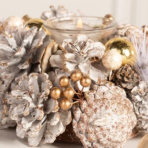 Нежность, изящество, очарование - все это можно сказать о новом подсвечнике для декора от голландского бренда Edelman! Он небольшой, но в то же время акцентный и заметный - он будет украшать дом и создавать в нем атмосферу праздника. Любоваться декоративным подсвечником можно бесконечно - выкрашенные в белый оттенок шишки, пушистые хвоинки, золотистые элементы - все это создает красивый и нарядный облик украшения. Обратите внимание, что он рассчитан на одну свечу и разместить его можно как на обеденном столе на кухне, так и на журнальном столике в гостиной.