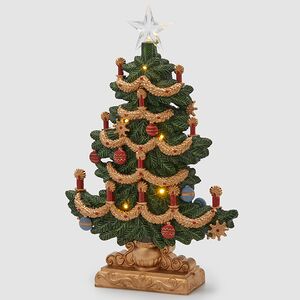 Светящаяся елочка Котильон словно сошла с красочных рождественских иллюстраций художника! Размашистые зеленые ветви с прорисованными хвоинками украшают роскошные ряды золотой мишуры, красные шары и сверкающие свечи. Макушку венчает звезда, а нижняя часть создана в виде узорчатого постамента, возвышающего новогоднюю фигурку словно на троне. Декоративная елка дополнена подсветкой - стоит только нажать на кнопку, как ее ветви оживут в сиянии трогательных огоньков! Красавица Котильон станет уютным новогодним ночником или деталью композиции, украшением праздничного стола или камина.