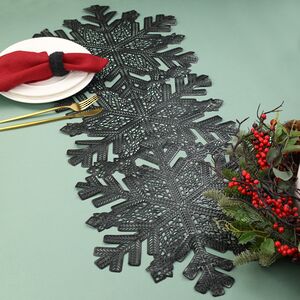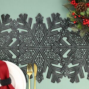 Плейсмат, созданный в зимнем стиле, станет гармоничным украшением новогоднего стола и защитит столешницу от повреждений. Изящный черный цвет, резные снежинки и элегантная эстетика зимнего кружева добавят в ваш праздничный ужин настроение новогоднего волшебства! Благодаря размеру и форме плейсмат послужит и салфеткой, и дорожкой для сервировки.