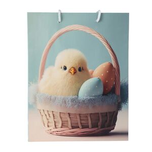 Мы всегда выбираем подарки для близких с особой любовью и теплом. Но для того, чтобы презенты произвели нужное впечатление, важно также позаботиться и об их упаковке. Так, пасхальные сюрпризы можно будет преподнести в таком чудесном бумажном пакете с ручками, имеющем нежный и трогательный дизайн. Его украшением, несомненно, является крохотный пушистый цыпленок, выглядывающий из плетеной корзинки.