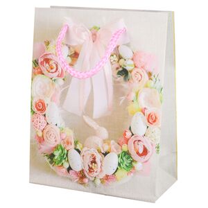 Не важно, станет ли пасхальной подарочный пакет Easter Flowers хранителем простенького сувенира к Светлому Воскресенью или брендового аксессуара - главное, что с его появлением в комнате повеет весной, а принт с яичками в гнезде, затерянном среди цветов, всколыхнет лирические нотки в душе всех присутствующих. Даже ручки бумажного пакета, обеспечивающие удобную транспортировку, подобраны в тон!