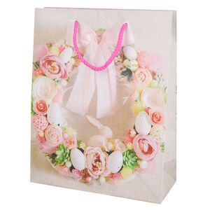 Не всякая поздравительная открытка выглядит так нарядно, как пакет для подарков Easter Flowers! Пышные белые цветы с золотыми сердцевинами подчеркивают радостную атмосферу чудесного праздника, а трогательные конопатые яички в гнезде поселяют в сердце светлые эмоции. Эффектный бумажный пакет с ручками-шнурами позволит вам с удобством доставить адресату и презент, и пасхальное настроение!
