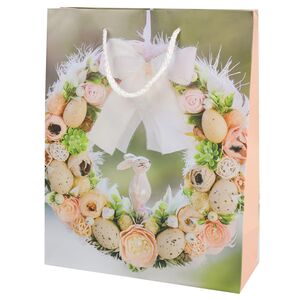Не всякая поздравительная открытка выглядит так нарядно, как пакет для подарков Easter Rose! Тугие бутоны белых и алых роз тонко гармонируют с атмосферой чудесного праздника, а трогательная фигурка кролика поселяет в сердце светлые эмоции. Эффектный бумажный пакет с ручками-шнурами позволит вам с удобством доставить адресату и презент, и пасхальное настроение!