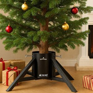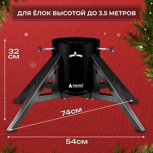 Черная подставка под живую елку рассчитана на деревце до 3.5 метров. Это идеальный вариант для интерьерной высокой красавицы: металлические устойчивые ножки, оптимальный объем емкости для воды и надежное крепление ствола в стакане с помощью четырех болтов. Стильный геометрический дизайн позволяет использовать подставку для ели даже без маскировки - она прекрасно вписывается современный интерьер.