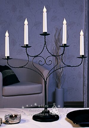 Электрический светильник «Heartly», произведенный известной шведской компанией Star Trading, выглядит почти неотличимым от старинного канделябра на пять свечей. Тонкие изогнутые контуры ветвей этого прекрасного подсвечника образуют узор, по форме напоминающий кленовый лист. Строгий и вместе с тем романтичный черный силуэт канделябра дополняет тонкая проволока, по спирали обвивающая все детали узора.