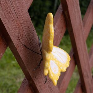 Бабочка Джоана поможет преобразить ваш дачный участок и сделает из двора красивый тропический уголок. Крылышки экзотической прелестницы раскрашены в нежный пастельный оттенок, который чудесно гармонирует с шоколадными вкраплениями. Такое садовое украшение на забор, перила или даже ветку дерева тонко подчеркнет романтическое настроение ваших владений. Удобный металлический крючок позволит легко зафиксировать керамическую фигурку для декора в выбранном вами месте.