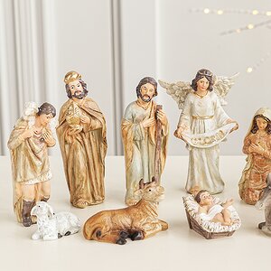 Все рождественские фигурки, составляющие композицию, выполнены невероятно детально и точно. Эмоции, выражения лиц, настроение героев без труда считываются зрителем. Красочные, цепляющие и понятные образы обязательно затронут струны вашей души и вызовут самые теплые чувства. Вертеп с фигурками идеально дополнит праздничный интерьер и поселит в вашем доме атмосферу радости и ощущения наступающего чуда.