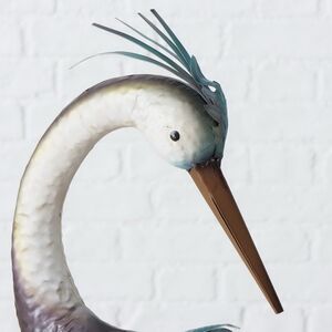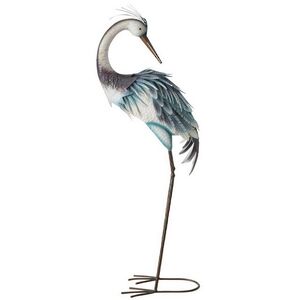 Цапля Лаурель - металлическая садовая фигура, созданная в натуральную величину. Голубой окрас перьев, длинные ножки, изящный изгиб шеи и забавный хохолок - мастера славно постарались над этой обитательницей болотного царства, чтобы приблизить ее образ к оригиналу! Цапля станет идеальным садовым декором, создающим атмосферу сказочного местечка.