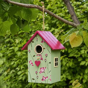 Садовое украшение Primula привнесет нотку новизны в оформление участка или интерьера! Оливковый фасад с флористическим художественным мотивом, яркая крыша и миниатюрное сердечко на жердочке - такой милый домик станет не только декором для садового дерева, но и комфортным скворечником для птиц. Какая пташка не захочет стать хозяйкой собственного коттеджа с видом на цветущий сад?