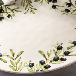 Armando Olivia - блюдо для сервировки, созданное в эстетике Средиземноморья. Изящные веточки оливкового дерева на кайме, белая керамика и едва заметный рельеф поверхности - сервировочное блюдо освежит привычное оформление стола, добавив в него нотку жаркой Италии! Это отличный вариант для подачи на стол закусок, ягод, десерта и других угощений.