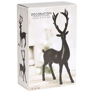 Интерьерная фигура Олень Гаспар в черном матовом цвете - стильное решение для оформления стеллажа, столика или комода, которое придаст помещению еще большей индивидуальности. Особенно роскошно статуэтка оленя будет смотреться в новогоднем интерьере, соседствуя с хвойными букетами, венками и канделябрами и гармонично вписываясь в зимнюю тематику и праздничную обстановку.