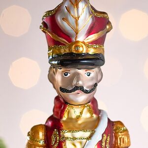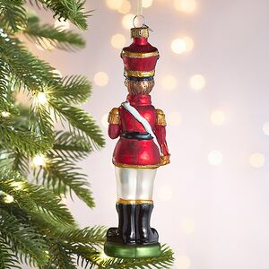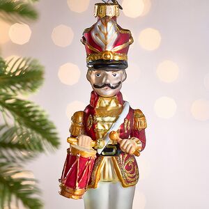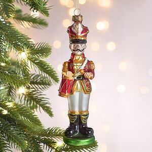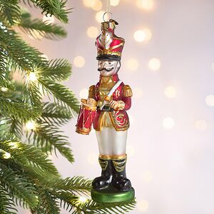 Вы когда-нибудь слышали новогодний марш? Если нет, то стеклянная елочная игрушка Барабанщик Уильям готова его тотчас исполнить. Поверьте, эта музыка стоит того: под ее бодрый ритм каждое украшение на елке вытягивается по струнке, словно ожидая построения на праздничный парад. Да и сам музыкант - парень видный: красный мундир и гусарский кивер ему весьма к лицу. Потому в новогодней пестроте декора его яркий образ будет смотреться идеально!