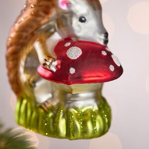 Новогодняя игрушка Белка Дарни с грибочком выполнена в лучших традициях русской стеклянной елочной игрушки! Добрый, откликающийся в сердце, образ лесного зверька, детализированное исполнение, делающее игрушку изящной, и красочная ручная роспись, оживляющая украшение - такой декор достоин из года в год красоваться на елке вне зависимости от меняющихся трендов.