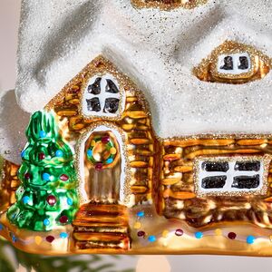 Каким чудом зверушки заполучили этот домик - остается только догадываться. Но факт остается фактом: именно в нем лесные обитатели собираются отмечать Новый год! Уже с утра внутри бревенчатого коттеджа не утихает суета: белочка печет пирожки, медведь разливает по бокалам мед, а заяц репетирует чечетку. С минуты на минуту прилетят снегири, чтобы почистить крышу от снега и привести в порядок украшения на елке. В общем, праздник обещает быть фееричным. Нам лишь остается повесить новогоднюю игрушку Домик на елку и позавидовать дружбе лесных зверушек!