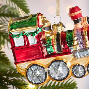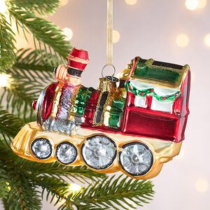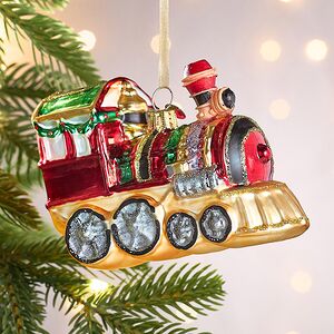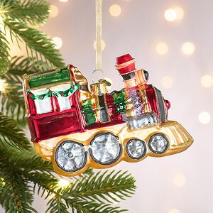 Стеклянная новогодняя игрушка Поезд навевает теплые воспоминания из детства, наполненное мечтами и фантазиями о сказочных путешествиях под стук колес! Ах, как порой хочется вернуться в беззаботную сказку и представить себя в кабине такого яркого, расписного и вполне реального новогоднего транспорта! Такая возможность непременно представится, когда в комнате появится пушистая ель, и на ее ветку взлетит эта елочная игрушка Поезд.