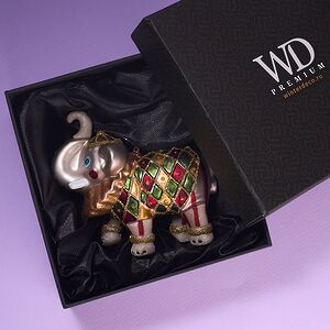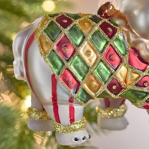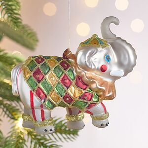 Вешая на елку Слона, что задорно вскинул хобот, совершая круг почета по цирковой арене, вместо одной подвески вы получаете сразу две елочные игрушки: Клоуна в цветастом трико и добродушного зверя, по перламутровой шкуре которого то и дело скачут блики света. Особенно эффектно Тото будет выглядеть среди зеленой, синей и черной хвои, на фоне которой новогодняя игрушка засияет, словно жемчужина.