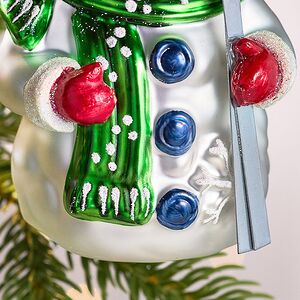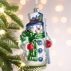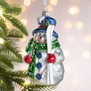 Стеклянная новогодняя игрушка Снеговик Лейтон с лыжами дополнит вашу зимнюю сказку великолепным образом, будто сошедшим со старой рождественской открытки. В этой елочной игрушке из стекла чудесно все: и живые эмоции на белоснежном личике, и красочная ручная роспись, и высокая детализация, заставляющая рассматривать фигурку, будто она живая!