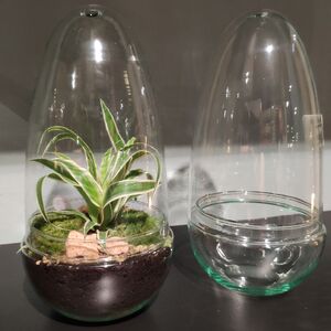 Если вы давно хотели завести миниатюрный садик на подоконнике, емкость для флорариума Рододендрон сумеет воплотить вашу мечту в реальность, став уютной комнатной теплицей для растений. Вытянутая форма необычного сосуда будет изящно смотреться в интерьере, прозрачное стекло позволит цветку свободно купаться в теплых солнечных лучах, а вам - наслаждаться поистине эстетичной флористической композицией. Для размещения внутри вазы флорариума закрытого типа отлично подойдут маленькие папоротники и фиалки, влаголюбивые цикламены и яркие кротоны. Живой декор из растений станет отличным украшением гостиной и спальни.
