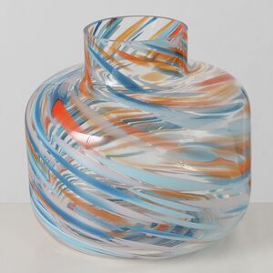 Добавьте яркого настроения в интерьер комнаты, украсив столик или комод декоративной вазой для цветов Raya! Жизнерадостные краски, расплывающиеся по поверхности крупными мазками, в сочетании с простой формой бочонка делают эту стеклянную вазу креативным элементом интерьера. Поставьте в нее букет или оставьте без наполнения - сосуд в любом варианте будет цеплять взгляды и наполнять пространство творческой энергией.